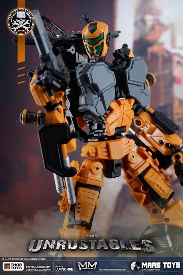 Introducing Mayhem Mekanics’ first project, MM01 The Unrustables. A 1:18 scale transforming Mech Bike that when in robot mode, integrates the driver as the chest portion of the robot. Figure stands 22CM/8.7″ tall in robot mode and each set includes one bike, one rider and several weapons. Pictures are of prototype figures, final images to come.